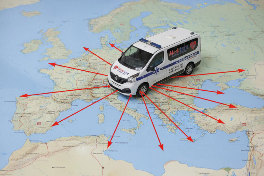 H εταιρεία ιδιωτικών ασθενοφόρων στη Θεσσαλονίκη Meditran Ambulance επεκτείνει τις δραστηριότητές της και στο εξωτερικό, παρέχοντας υπηρεσίες οργάνωσης και εκτέλεσης διακομιδών από και προς χώρες του εξωτερικού με συντονισμό όλων των απαραίτητων διαδικασιών. Είτε είστε Έλληνας που για λόγους υγείας πρέπει να μεταφερθείτε σε νοσηλευτικό ίδρυμα του εξωτερικού για ιατρική περίθαλψη (π.χ. χειρουργική επέμβαση) ή να επιστρέψετε στην Ελλάδα από το εξωτερικό, είτε είστε τουρίστας ο οποίος επιθυμεί να μεταφερθεί με ασθενοφόρο στη χώρα του, οι διασώστες της Meditran Ambulance βρίσκονται σε 24ωρη επιχειρησιακή ετοιμότητα για να σας μεταφέρουν με ασφάλεια σε οποιοδήποτε νοσηλευτικό ίδρυμα ή στην οικία σας.