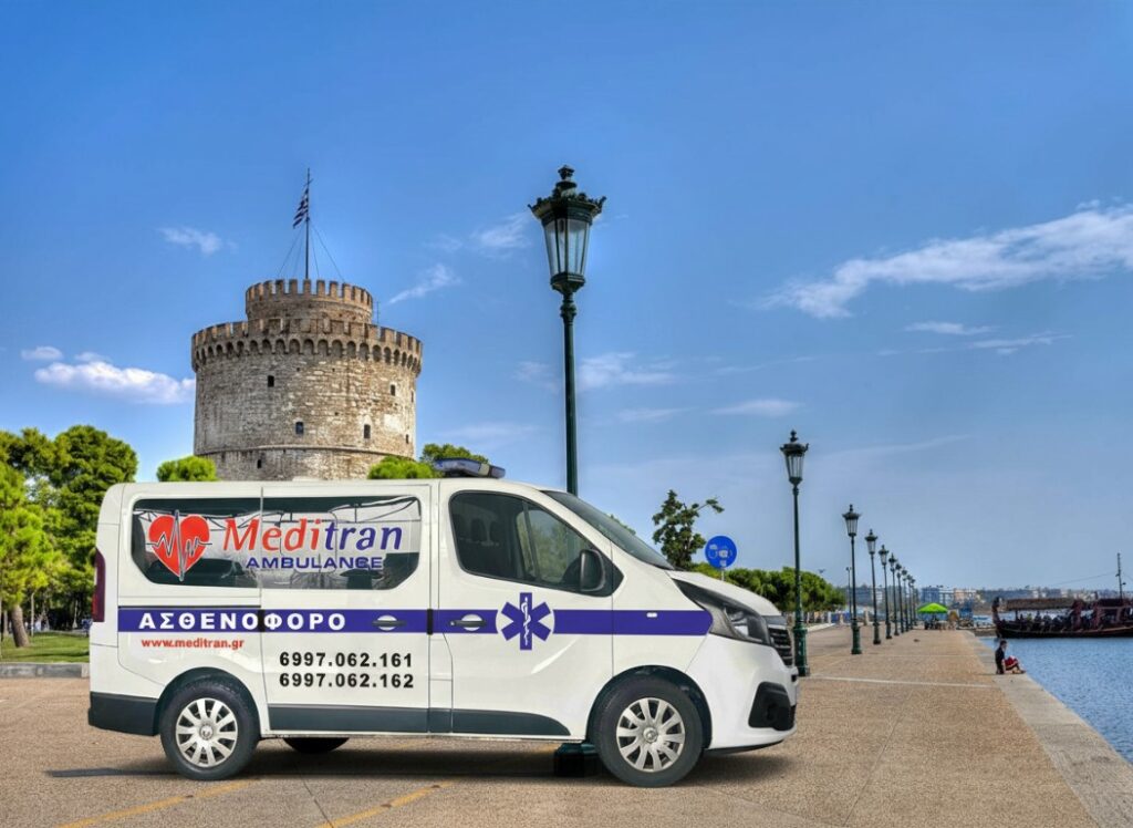 H εταιρεία ιδιωτικών ασθενοφόρων στη Θεσσαλονίκη Meditran Ambulance καλύπτει ένα ευρύ γεωγραφικό πλάτος, παρέχοντας υπηρεσίες όχι μόνο στη Θεσσαλονίκη, αλλά και σε όλη την Ελλάδα και το Εξωτερικό, αρκεί να καλέσετε στο τηλεφωνικό μας κέντρο 6997.062.161 – 6997.062.162 (24 ώρες το 24ωρο).