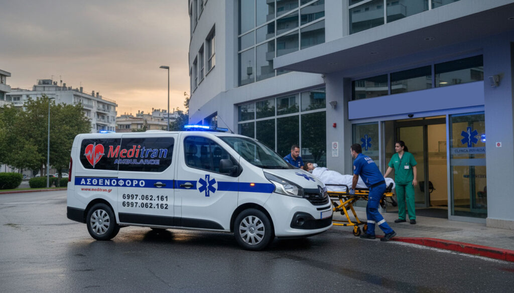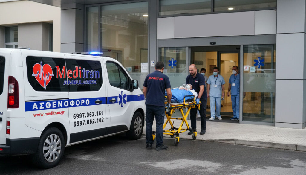 Η Meditran Ambulance παρέχει 24ωρη εξυπηρέτηση και εκτελεί διακομιδές έκτακτων περιστατικών σε όλα τα δημόσια νοσοκομεία και τις ιδιωτικές κλινικές της Ελλάδας και του Εξωτερικού. Η εταιρεία μας μπορεί ανά πάσα στιγμή να προσφέρει τις υπηρεσίες της σε άτομα που αντιμετωπίζουν σοβαρό πρόβλημα υγείας και πρέπει να μεταφερθούν άμεσα σε κάποιο δημόσιο ή ιδιωτικό νοσηλευτικό ίδρυμα.