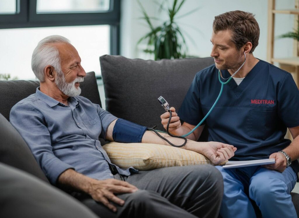 Η υπηρεσία «Νοσηλεία κατ’ Οίκον» της Meditran Ambulance αποτελεί μια ολοκληρωμένη λύση φροντίδας, σχεδιασμένη να μεταφέρει την ποιότητα και την ασφάλεια ενός νοσοκομειακού περιβάλλοντος στην άνεση και την οικειότητα του σπιτιού σας. Στόχος μας είναι η παροχή εξειδικευμένης ιατρικής και νοσηλευτικής υποστήριξης σε ασθενείς που αδυνατούν να μετακινηθούν ή προτιμούν να αναρρώσουν στο δικό τους περιβάλλον. Το έμπειρο νοσηλευτικό προσωπικό μας αναλαμβάνει ένα ευρύ φάσμα υπηρεσιών που αφορούν τη διαχείριση χρόνιων παθήσεων ή τη μετεγχειρητική φροντίδα ενός ασθενούς.